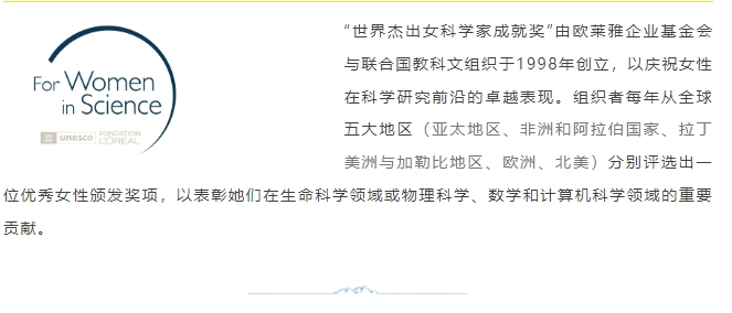 今年的颁奖典礼将于5月28日在联合国教科文组织巴黎总部举行,表彰这五位杰出女科学家在生命与环境科学领域的卓越贡献,特别是在面对全球公共卫生挑战时,她们针对癌症、疟疾、小儿麻痹症等传染性疾病,以及肥胖症、糖尿病、癫痫等慢性疾病所做的开创性研究与杰出成果。