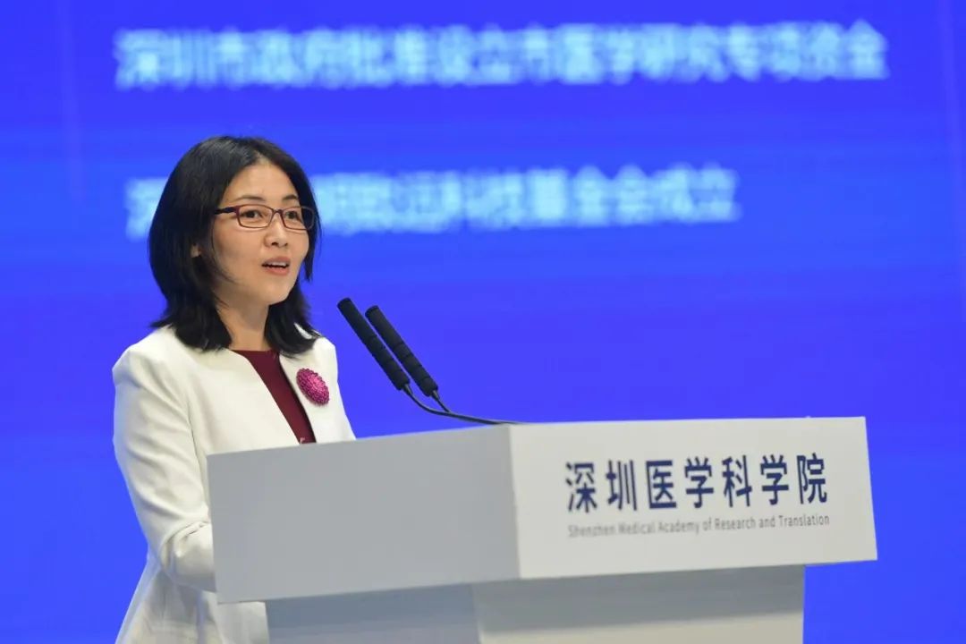 颜宁首先致辞,她对莅临大会的各位领导、各界嘉宾表示诚挚欢迎,对关心和支持深圳医学科学院发展的朋友表示衷心感谢。颜宁表示,深圳医学科学院是党中央、国务院赋予深圳建设中国特色社会主义先行示范区的一项重要使命,自去年12月10日揭牌,在“梦想之都”一步一脚印筑梦,一画一成图逐梦,已经在今年10月26日经市委市政府批准正式去筹。
