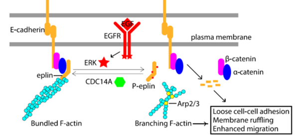 Nan-Peng Chen; Borhan Uddin; Robert Hardt; Wen Ding; Marko Panic; Ilaria Lucibello; Patricia Kammerer; Thomas Ruppert; Elmar Schiebel; Human phosphatase CDC14A regulates actin organization through dephosphorylation of epithelial protein lost in neoplasm, PNAS, 2017, 114(20): 5201-5206