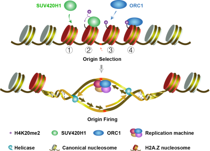 Haizhen Long#; Liwei Zhang#; Mengjie Lv#; Zengqi wen#; Wenhao Zhang; Xiulan Chen; Peitao Zhang; Tongqing Li; Luyuan Chang; Caiwei Jin; Guozhao Wu; Xi Wang; Fuquan Yang; Jianfeng Pei; Ping Chen; Raphael Margueron; Haiteng Deng; Mingzhao Zhu*; Guohong Li*; H2A.Z facilitates licensing and activation of early replication origins, Nature, 2020, 577(7791):576-581