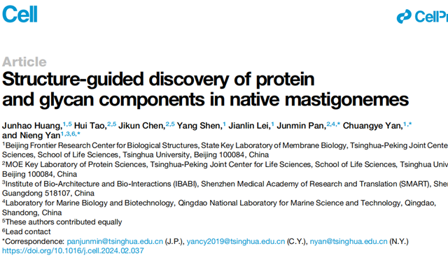 清华大学讲席教授、北京生物结构前沿研究中心研究员、深圳医学科学院创始院长颜宁,清华大学生命科学学院副教授、北京生物结构前沿研究中心研究员闫创业,清华大学生命科学学院教授潘俊敏为本文的共同通讯作者。清华大学生命科学学院2022级博士生黄隽豪、2018级博士生陶慧和2022级博士生陈继坤为本文共同第一作者。清华大学生命科学学院2020级本科生沈扬参与了本研究。清华大学冷冻电镜平台主管雷建林教授为冷冻电镜数据收集提供了帮助。实验的电镜数据采集得到清华大学冷冻电镜平台的支持,实验的质谱鉴定工作得到了蛋白质化学与组学平台的支持,实验的计算工作得到清华大学高性能计算平台、国家蛋白质设施实验技术中心(北京)的支持。本研究得到了科技部重点研发计划,国家自然科学基金重大研究计划、国家自然科学基金面上项目、国家自然科学基金专项项目、膜生物学国家重点实验室、北京市科技新星计划、北京高校卓越青年科学家计划项目、北京生物结构前沿研究中心与清华-北大生命科学联合中心的经费支持。