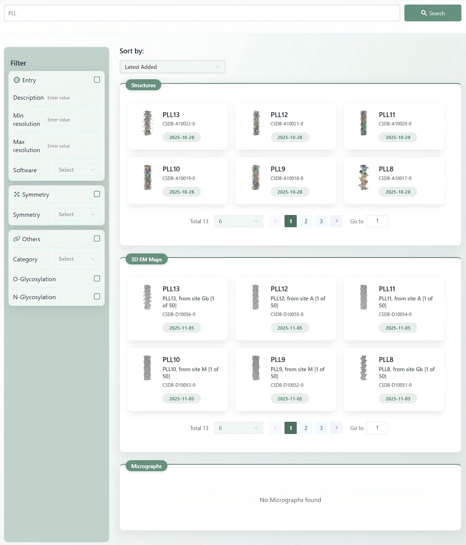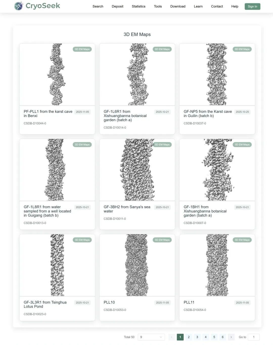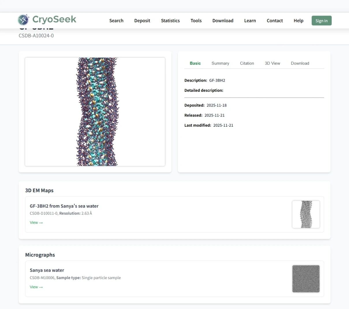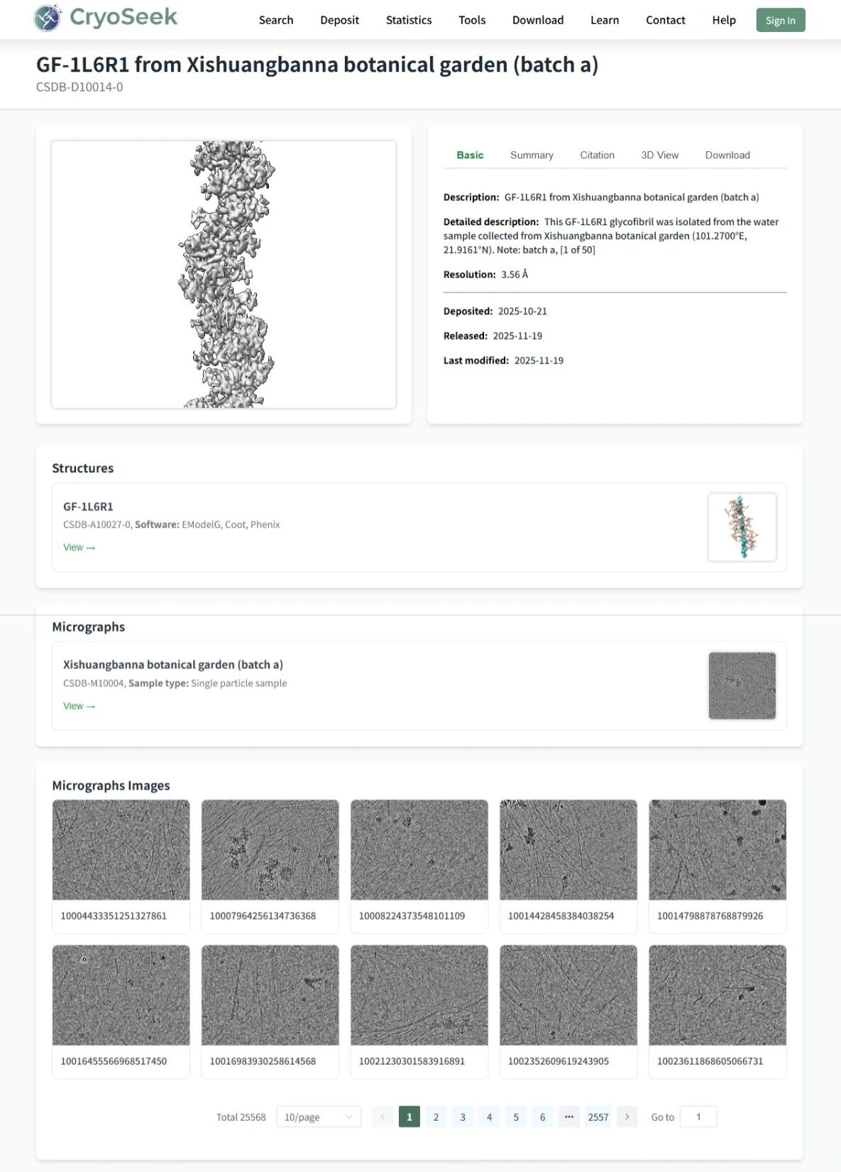 相比于蛋白质数据库(PDB)及电镜数据库(EMDB),CryoSeek数据平台专注于非蛋白生物分子,提供针对糖质及其他“生命暗物质”研究的专业化数据共享与分析服务。当前版本以实现数据沉积与共享为核心,未来将持续集成更多交互式分析工具,并计划纳入质谱、宏基因组测序等互补技术数据,系统探索各类糖质纤维结构的来源与功能,并推动不同采样点物种与生物实体多样性研究。作为CryoSeek策略从方法创新走向系统化、规模化与社区化的重要载体,CryoSeek数据平台将为糖结构生物学及相关结构领域的前沿发现提供持续动力,期待通过这一开放平台,团队将和全球科学家一道共同绘制“生命暗物质”新世界的航海图。