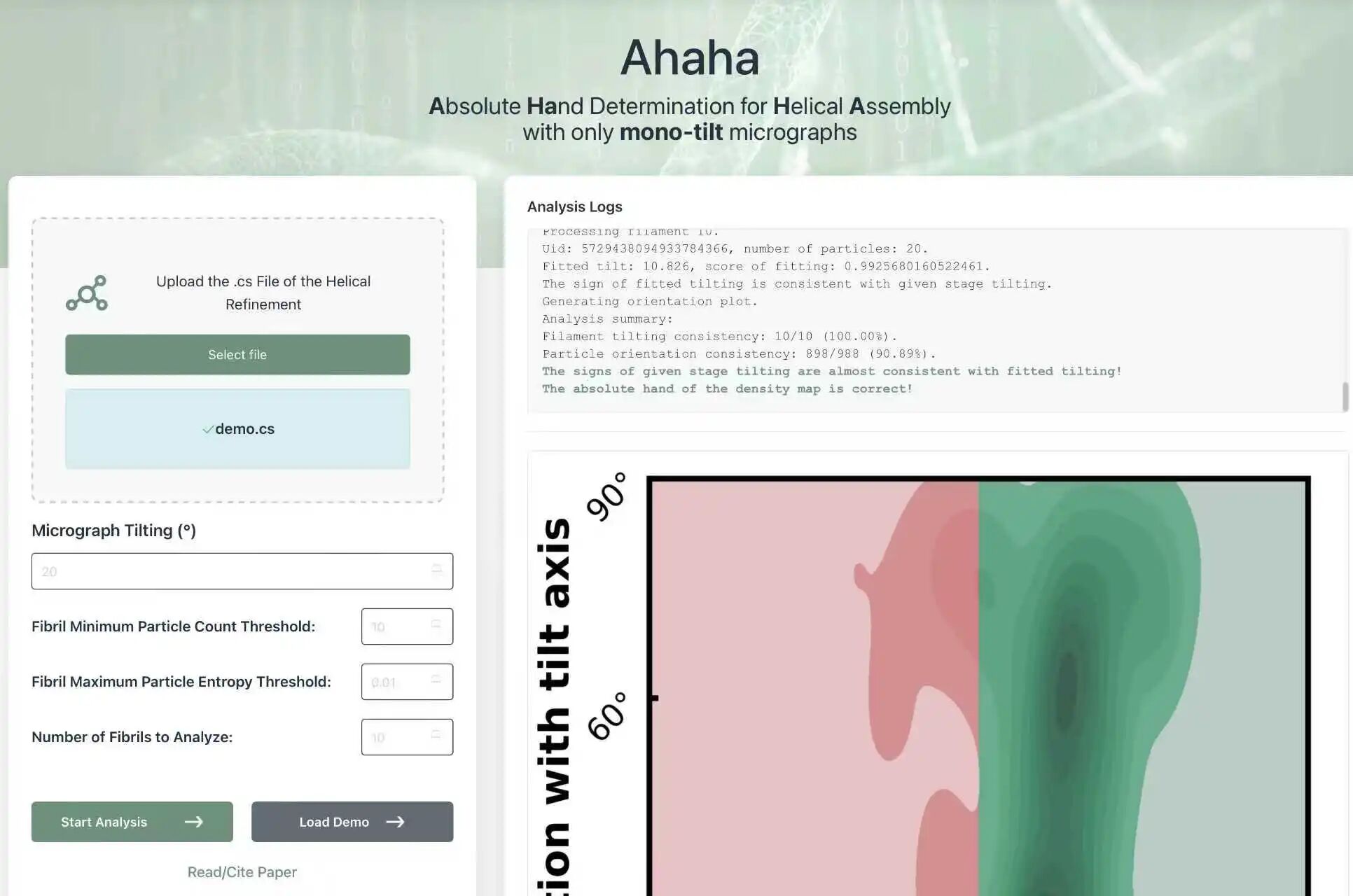 除去上述传统数据库功能以外,CryoSeek数据平台还集成了全球社区、实用工具、教学训练等多种功能。例如,由颜宁团队与胡名旭团队合作开发的用于判定螺旋结构绝对手性的工具Ahaha(图10)。