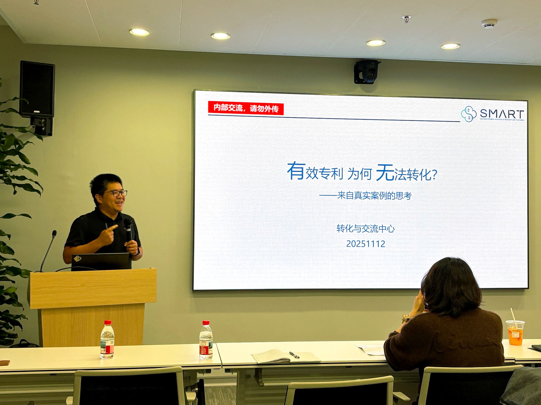 本次培训由转化与交流中心知识产权高级主管李英姿和转化服务主管许泽立联合主讲,通过多个真实案例的层层剖析,为与会者带来了一场关于专利保护与成果转化的深度分享。