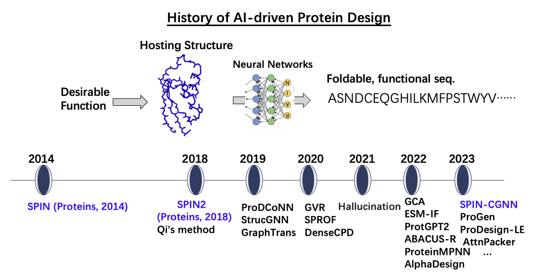 · First AI-driven methods for protein sequence design, achieving 30–34% sequence recovery (Fig. 2). Recognized as the inception of machine learning in protein design ([Ovchinnikov and Huang, Curr. Opin. Chem. Biol. 2021]), this paradigm shift (away from energy-based approaches) now dominates the field, enabling revolutionary advances in therapeutic protein & industrial enzyme design.